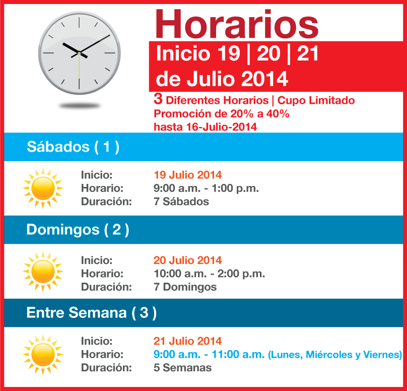 1. Revise nuestros horarios y confirme al mail jc@im9.com.mx si aún hay cupo en el horario que a usted le conviene.